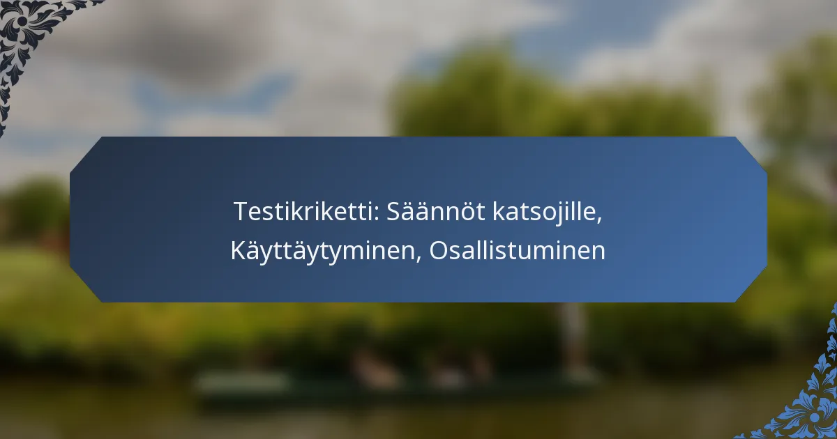 Testikrikettimatsien katsojilla on tärkeä rooli kunnioittavan ja miellyttävän ilmapiirin luomisessa. Tiettyjen käyttäytymissääntöjen, melutasojen ja pelaajien kanssa vuorovaikutuksen noudattaminen on olennaista positiivisen kokemuksen varmistamiseksi. Pelin seuraaminen livekommentaarin ja sosiaalisen median kautta voi rikastuttaa katselukokemusta entisestään, kun taas asianmukainen käytös varmistaa, että kaikki osallistujat voivat nauttia ottelusta täysillä.