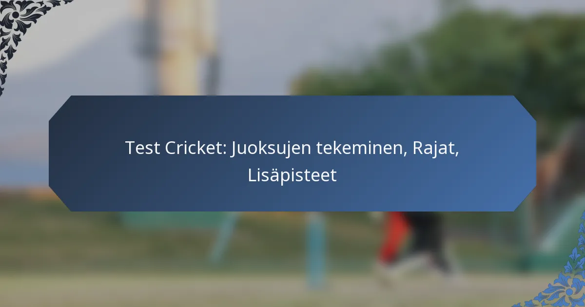 Test-cricketissä juoksujen tekeminen tapahtuu yhdistämällä yksittäisiä juoksuja, rajapisteitä ja ylimääräisiä juoksuja, joista jokaisella on tärkeä rooli ottelun lopputuloksen määrittämisessä. Rajapisteet, jotka voivat tuoda lyöjäjoukkueelle neljä tai kuusi juoksua, ovat erityisen vaikuttavia, kun taas ylimääräiset juoksut, kuten no-ballit ja leveät, tuovat lisäjuoksuja ilman suoraa lyöntiyritystä. Näiden juoksutapojen ymmärtäminen on olennaista pelin dynamiikan hahmottamiseksi.